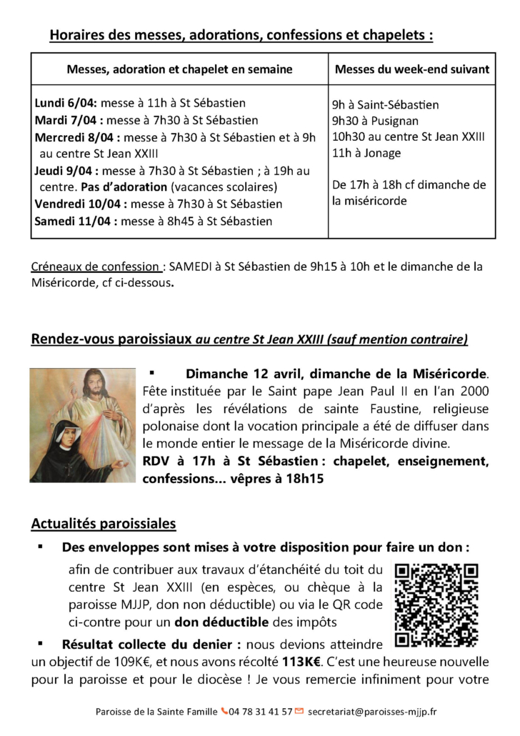 Retrouvez les annonces et rendez-vous paroissiaux de cette semaine.