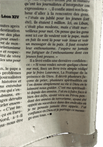 Confidence du Pape :